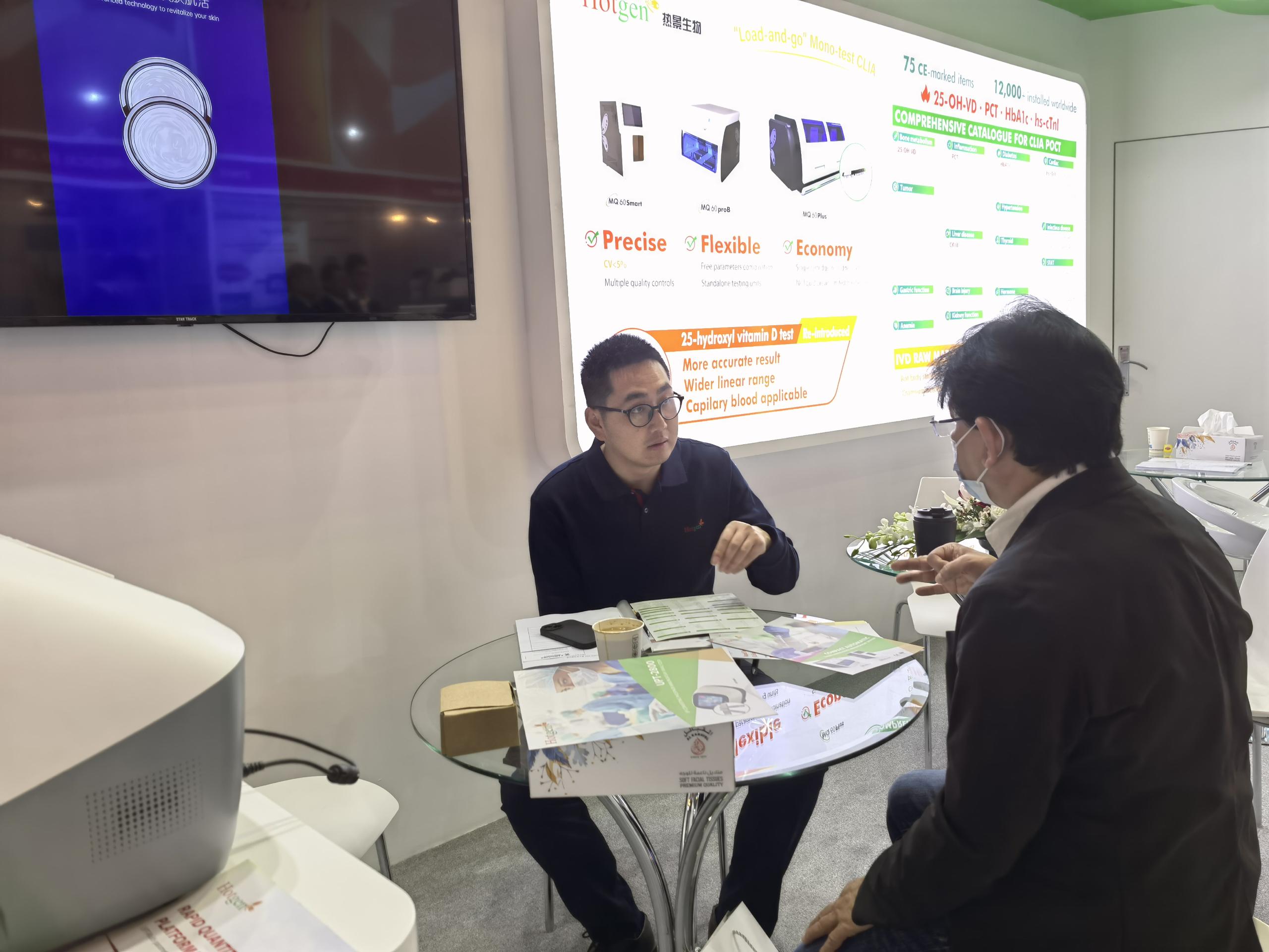 2024年2月8日,中東迪拜實(shí)驗(yàn)室設(shè)備及用品展(MEDLAB Middle East)圓滿收官!熱景生物的展位成為展會的焦點(diǎn)之一,吸引了現(xiàn)場的眾多參觀者。本次展會,公司展示了多場景化學(xué)發(fā)光平臺、上轉(zhuǎn)發(fā)光檢測平臺等先進(jìn)檢測技術(shù),重磅推出食品安全以及毛發(fā)毒品檢測產(chǎn)品,為醫(yī)療、公共安全和工業(yè)等領(lǐng)域的客戶,提供了精準(zhǔn)、方便、快捷的現(xiàn)場檢測新選項(xiàng)。同時,公司還首次在中東地區(qū)展出自研的IVD試劑抗體、抗原等免疫診斷原材料產(chǎn)品,為區(qū)域內(nèi)體外診斷試劑生產(chǎn)供應(yīng)鏈提供了新的選擇。從高精度的診斷平臺,到高質(zhì)量診斷試劑原材料,熱景生物在展會上全面展示了公司在各領(lǐng)域的技術(shù)優(yōu)勢和潛力。