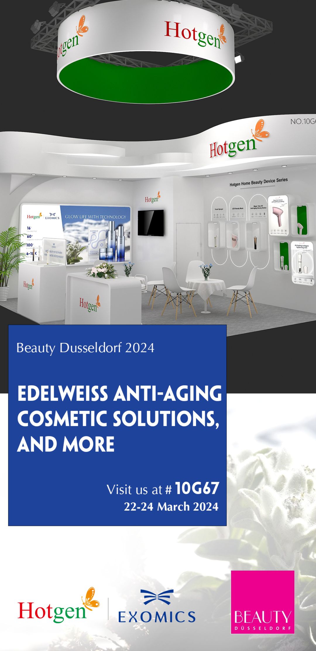 Holding the mission of "developing biotechnology, benefiting human health", Hotgen sincerely welcome all friends to visit our booth at 10 G67, and explore high-end innovative plant-powerd anti-aging cosmetics as well as other beauty devices.