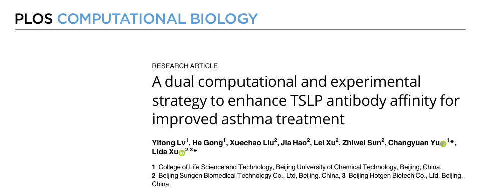 近日,熱景生物“X-Gen AI新藥發(fā)現(xiàn)與設計研究中心”在生物信息學與計算生物學領域高影響力經(jīng)典期刊PLOS Computational Biology上發(fā)表了題為“A Dual Computational and Experimental Strategy to Enhance TSLP Antibody Affinity for Improved Asthma Treatment” 的論文(doi: 10.1371/journal.pcbi.1011984)。“X-Gen AI新藥發(fā)現(xiàn)與設計研究中心”聯(lián)合培養(yǎng)博士生呂祎彤為論文第一作者,許立達研究員為論文主要通訊作者,北京化工大學喻長遠教授為共同通訊作者,舜景生物孫志偉總經(jīng)理為該套流程的搭建提供了極其重要的指導。