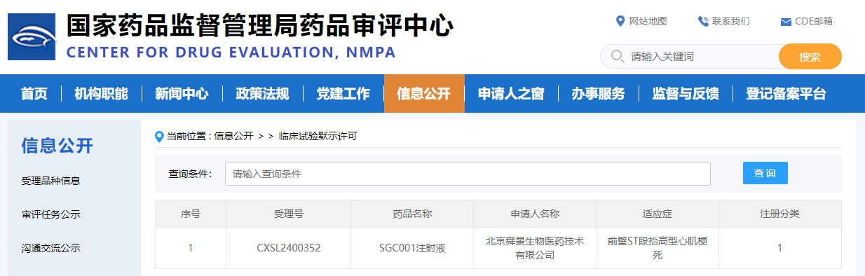 2024年08月05日,由熱景生物(SH.688068)孵化的創(chuàng)新藥公司北京舜景生物醫(yī)藥技術(shù)有限公司(以下簡稱舜景醫(yī)藥)研制的全球首款創(chuàng)新藥SGC001注射液成功獲得國家藥品監(jiān)督管理局藥品審評中心臨床試驗?zāi)驹S可。這是繼2024年05月22日該產(chǎn)品獲得美國FDA臨床試驗(IND)許可之后又一里程碑事件。