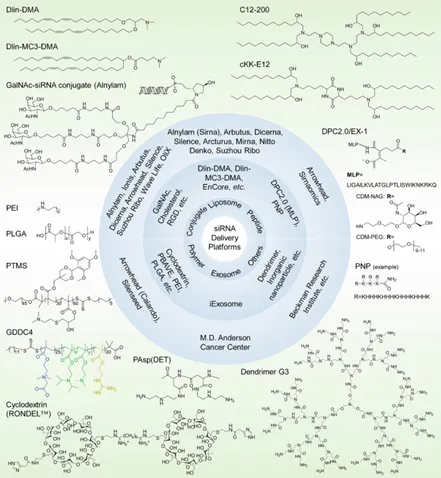 圖注:經(jīng)過(guò)臨床前和臨床評(píng)估的siRNA遞送平臺(tái)