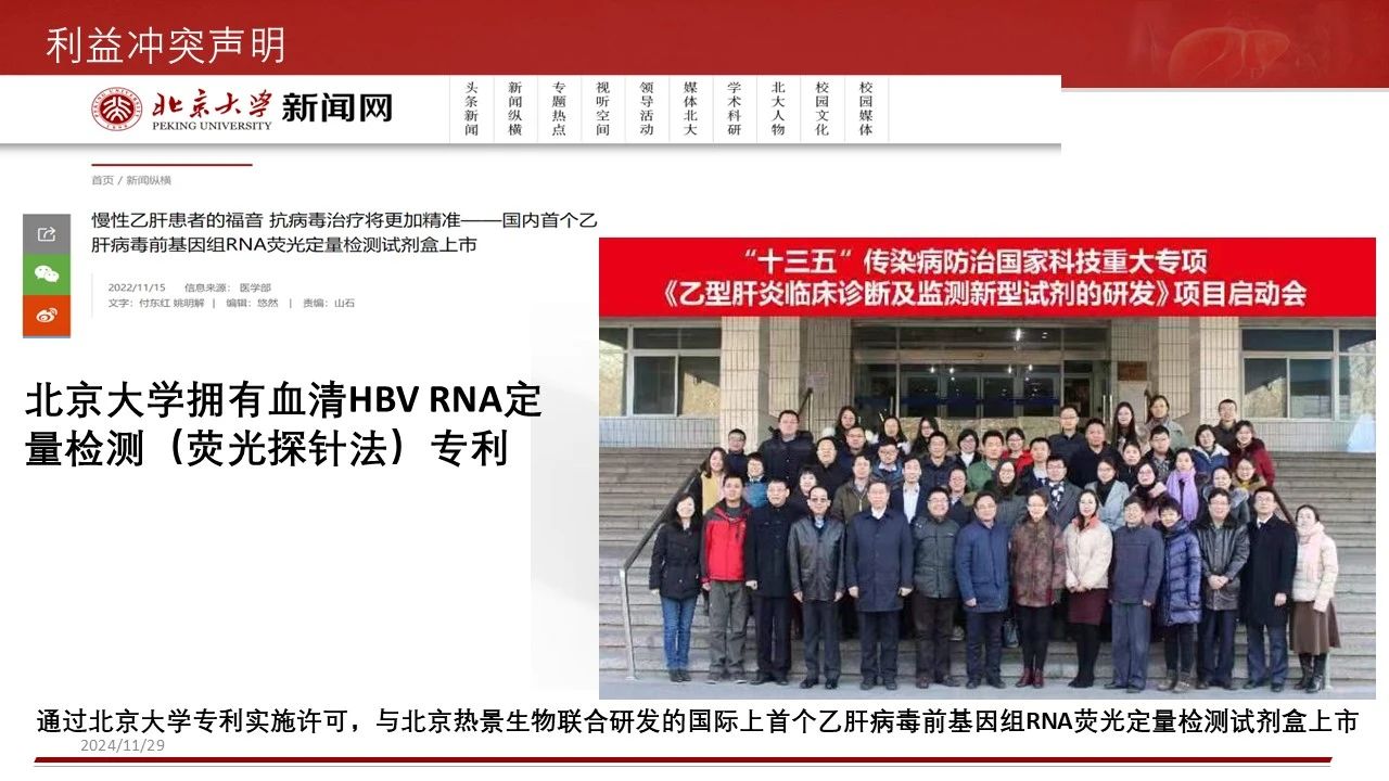 PS:北京大學擁有血清HBV RNA定量檢測(熒光探針法)專利,通過北京大學專利實施許可,與北京熱景生物聯(lián)合研發(fā)的國際上首個乙肝病毒前基因組RNA熒光定量檢測試劑盒已上市。