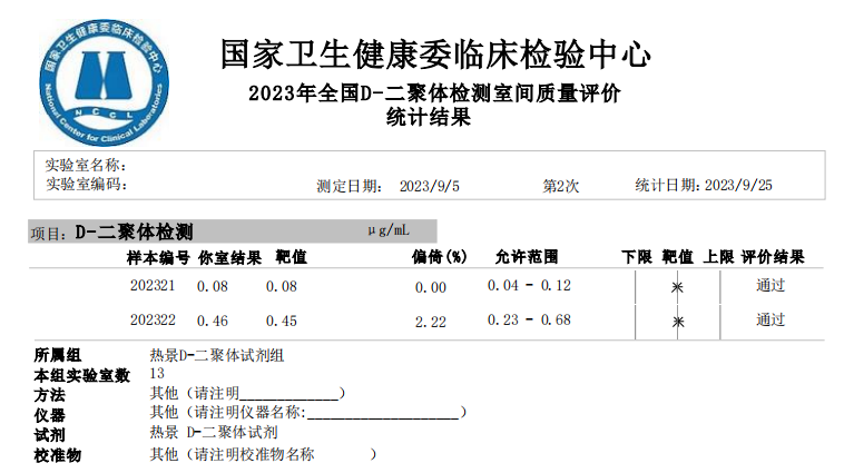 國家衛(wèi)生健康委臨床檢驗中心質(zhì)評項目成績單