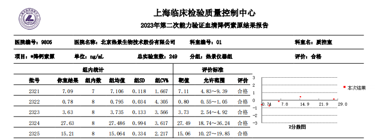 近日,國家衛(wèi)生健康委臨床檢驗中心(NCCL)公布了2023年第二次全國臨床檢驗室間質(zhì)量評價結(jié)果。經(jīng)了解,熱景生物心肌標(biāo)志物(肌酸激酶同工酶、肌紅蛋白、肌鈣蛋白I)、血清降鈣素原項目的上轉(zhuǎn)發(fā)光及化學(xué)發(fā)光兩大平臺產(chǎn)品,以及D-二聚體、白介素6、胃蛋白酶原項目的化學(xué)發(fā)光平臺產(chǎn)品均滿分通過此次室間質(zhì)量評價。同時,熱景生物參與的上海臨床檢驗中心2023年第二次能力驗證活動,包括AFP異質(zhì)體比率、B型鈉尿肽/N末端B型鈉尿肽前體、心肌標(biāo)志物(肌酸激酶同工酶、肌紅蛋白、肌鈣蛋白I)、血清降鈣素原等項目在內(nèi)的產(chǎn)品均通過評價。