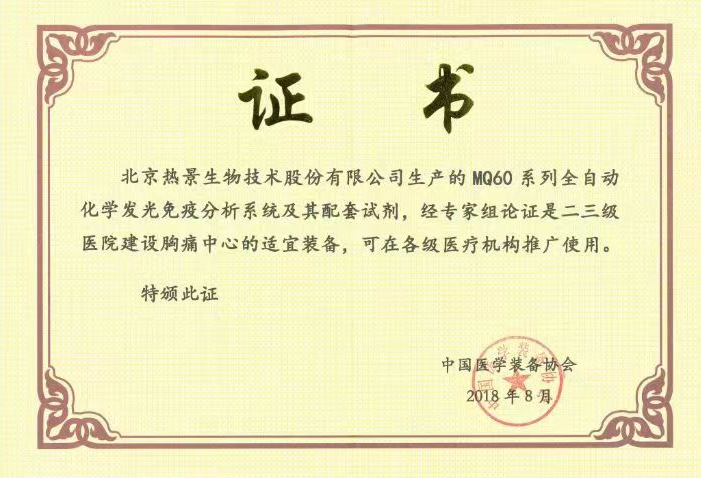早在2018年,MQ60系列全自動化學(xué)發(fā)光免疫分析系統(tǒng)及其配套試劑通過中國醫(yī)學(xué)裝備協(xié)會組織國內(nèi)檢驗、心內(nèi)和急診等領(lǐng)域知名專家技術(shù)論證,一致認為該設(shè)備滿足急診對高質(zhì)量檢測結(jié)果的要求,性能穩(wěn)定可靠,操作簡單快速,符合質(zhì)控要求,不依賴其它設(shè)備或繁瑣前處理,可對各類樣品進行檢測,滿足二三級醫(yī)院建設(shè)胸痛中心的要求,適合各級醫(yī)療機構(gòu)推廣應(yīng)用。