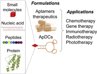 Aptamer是一段經(jīng)體外篩選得到的,折疊成特殊三維結(jié)構(gòu)的短單鏈寡核苷酸,能特異性結(jié)合較大范圍的目標(biāo),包括蛋白質(zhì)、小分子、金屬離子、病毒、細(xì)菌和全細(xì)胞,其高特異性和結(jié)合親和力可達(dá)到抗體水平。相比抗體藥物,核酸適配體具有體積小、較低免疫原性、無(wú)細(xì)胞化學(xué)合成以及較強(qiáng)組織穿透力、易修飾成本低等優(yōu)點(diǎn),在疾病診斷、治療和預(yù)防中有著廣泛的藥物應(yīng)用潛力。但其三維構(gòu)象受pH影響較大,親和性高度依賴(lài)于溶液性質(zhì)。第一款 Aptamer 藥物Pegaptanib于2004 年獲FDA批準(zhǔn)。它是一種具有29個(gè)核苷酸的RNA適配體,5’端的聚乙二醇部分可延長(zhǎng)其在人體內(nèi)的停留時(shí)間。Pegaptanib 通過(guò)空間結(jié)構(gòu)與血管內(nèi)皮生長(zhǎng)因子(VEGF)結(jié)合,抑制血管生成達(dá)到治療效果,因此被開(kāi)發(fā)用于治療濕性年齡相關(guān)性黃斑變性。
