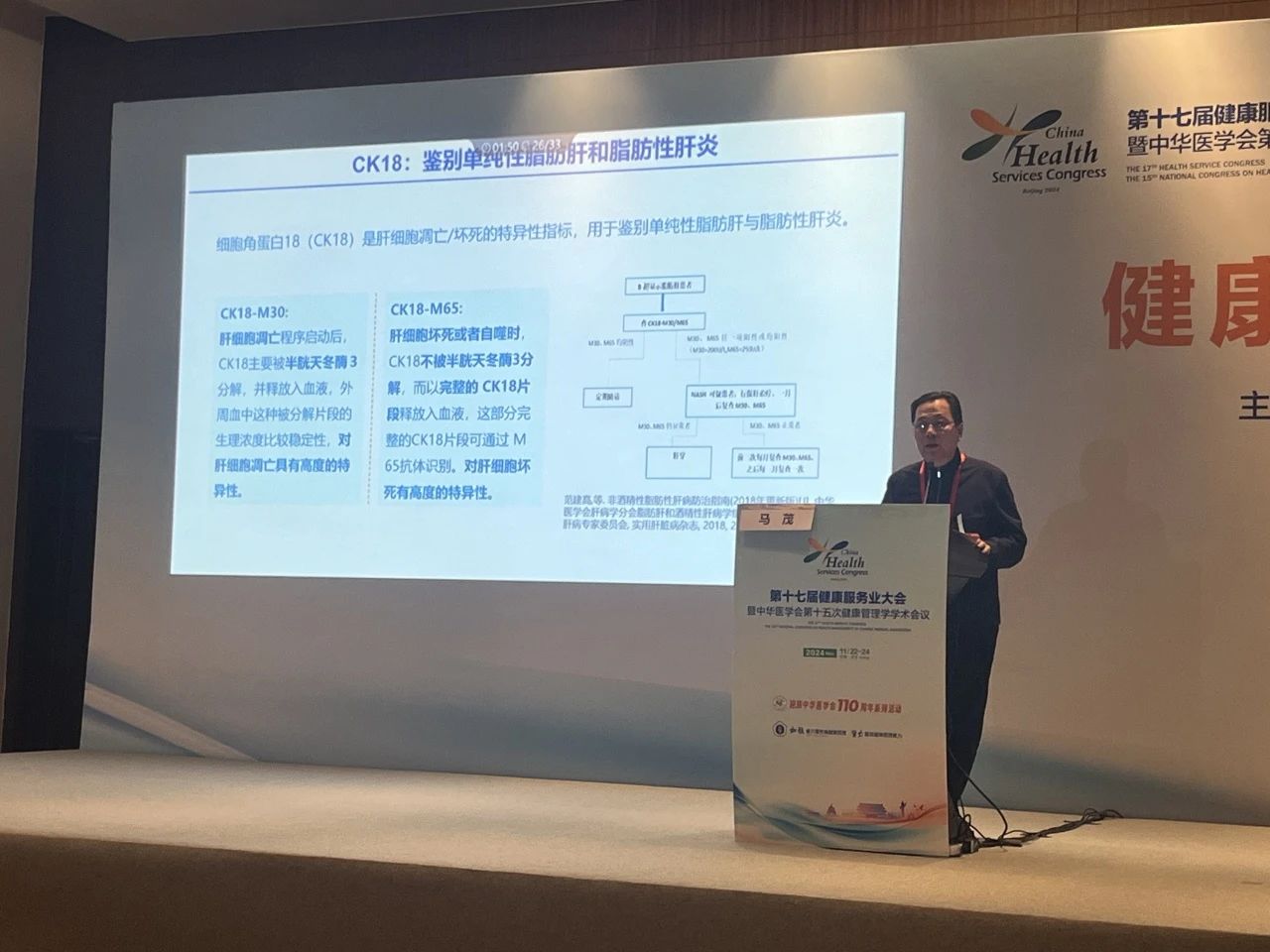 北京航天總醫(yī)院體檢中心張晗教授在專題講座中指出,細(xì)胞角蛋白18(CK18)片段在代謝相關(guān)脂肪性肝病MAFLD的早期篩查、疾病進(jìn)展監(jiān)測(cè)和治療效果評(píng)估中具有重要價(jià)值。全球約有16.6億MAFLD患者,中國城市人口中MAFLD患病率為28.77%。CK18-M30和M65片段與肝細(xì)胞凋亡和壞死相關(guān),其水平隨疾病嚴(yán)重程度升高。CK18在診斷MASH(代謝相關(guān)脂肪性肝炎)方面的性能優(yōu)于傳統(tǒng)肝酶指標(biāo),是目前最認(rèn)可的MASH輔助診斷指標(biāo)。張晗教授強(qiáng)調(diào),多學(xué)科協(xié)作管理是MAFLD治療的關(guān)鍵,通過綜合管理和個(gè)性化治療,可以有效改善患者的預(yù)后。