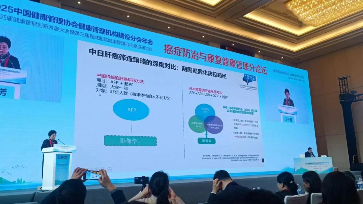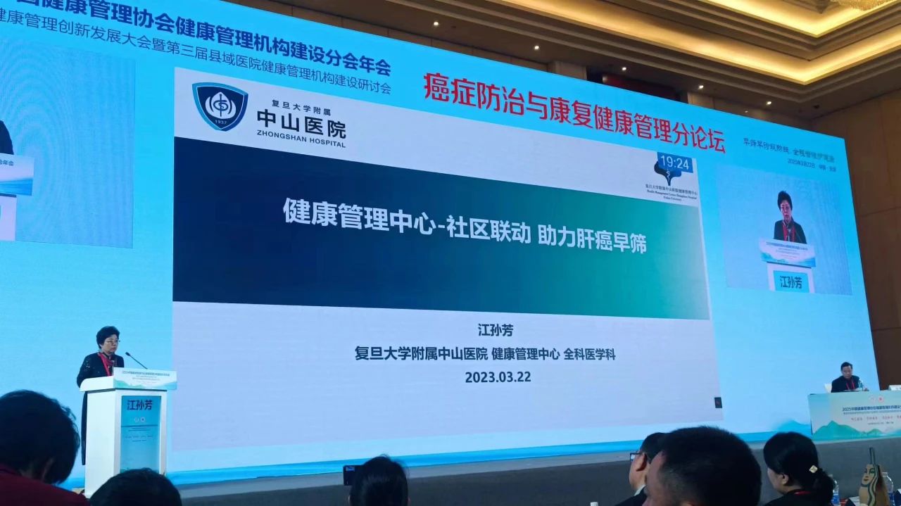 在《癌癥防治與康復健康管理》專項論壇中,復旦大學附屬中山醫(yī)院江孫芳主任受邀發(fā)表專題報告《健康管理中心-社區(qū)聯(lián)動 助力肝癌早篩》,從臨床實踐與科研結合的角度,系統(tǒng)闡述了C-GALAD模型在肝癌早期篩查中的創(chuàng)新應用價值。