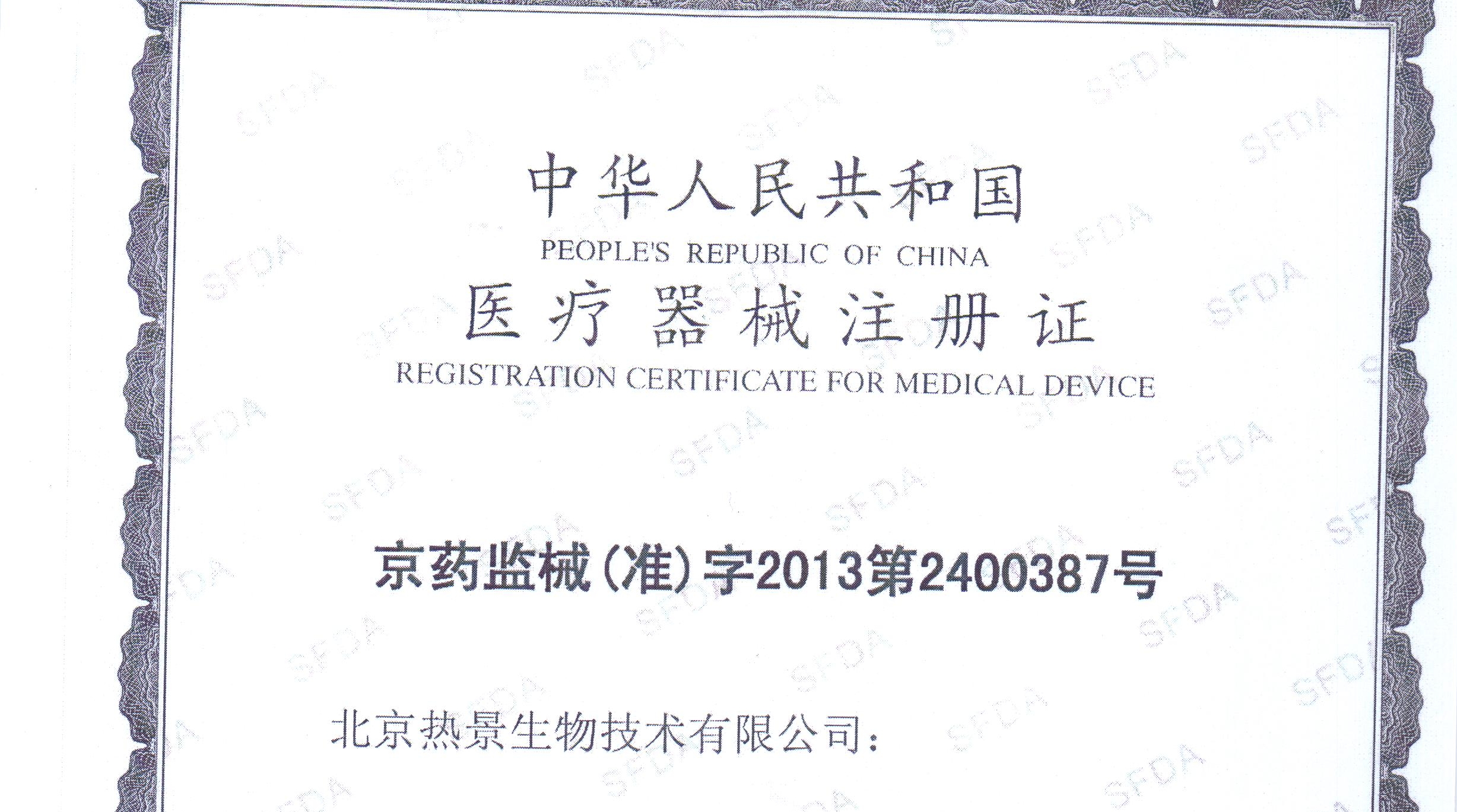 通過多人的共同努力,熱景生物心肌脂肪酸結(jié)合蛋白定量測定試劑盒(上轉(zhuǎn)發(fā)光法)獲得醫(yī)療器械注冊證,注冊證號:京藥監(jiān)械(準(zhǔn))字2013第2400387號。